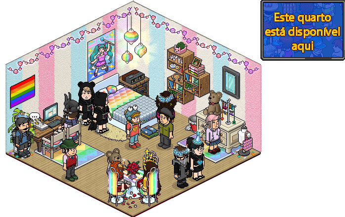 Nesta quinta-feira, 25/06, foi disponibilizado em todas as comunidades o Pack Quarto Arco-Íris para dar continuidade aos eventos de junho promovidos pelo Habbo Hotel e para celebrar o mês do Orgulho LGBT. Ao todo, o pack vem com 97 itens. O pack pode ser adquirido no catálogo por 45 moedas + 45 diamantes ou 99 moedas; pelo HabboShop, por R$ 18,90 / 5,49 €. Todos os usuários que adquirirem o pack receberão um emblema exclusivo — inclusive, os que forem presenteados. Lembrando que o Pack foi criado pelo usuário Mr.Riick do Habbo Holandês.